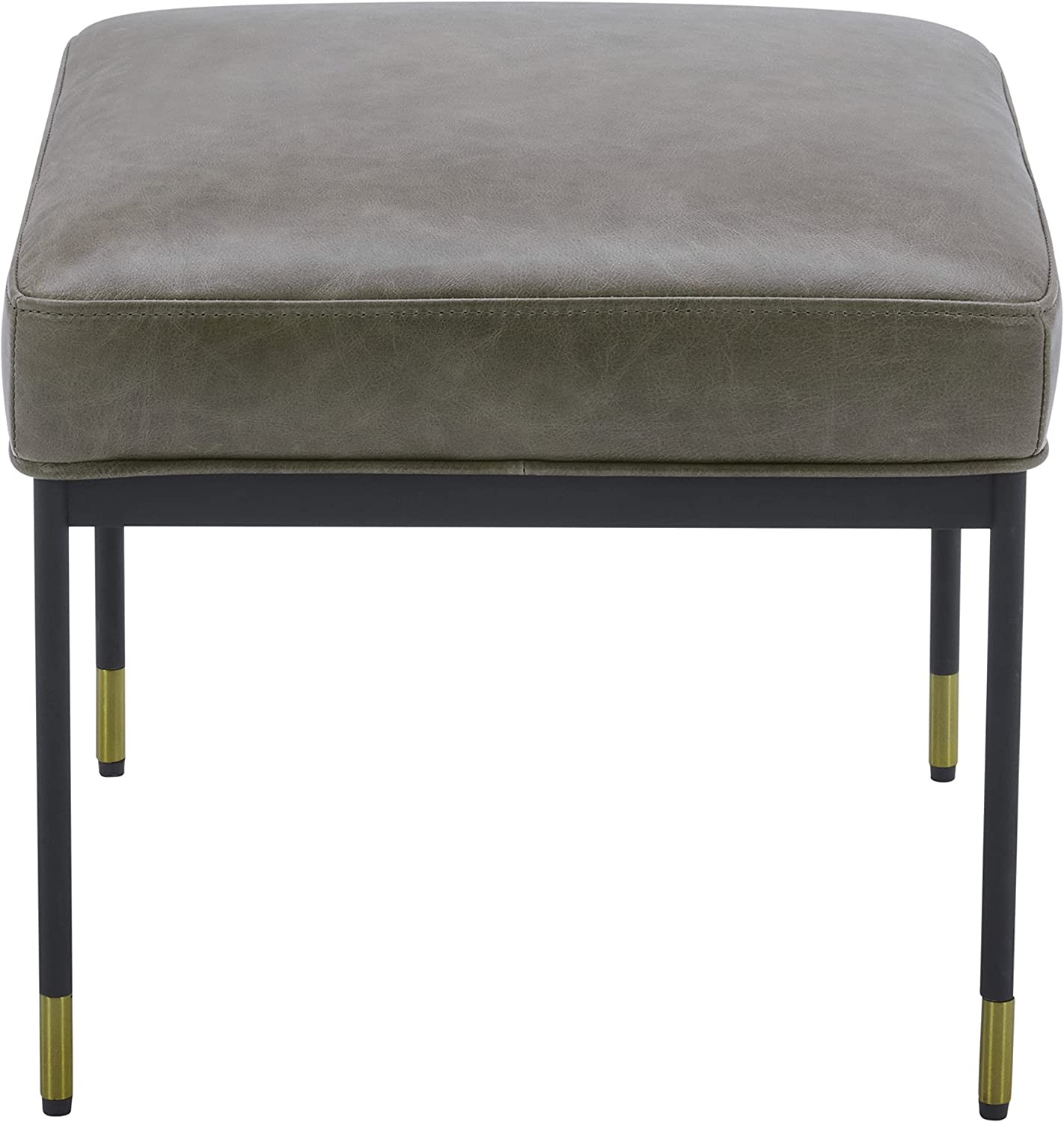 • Offering elegant minimalism and maximum versatility, this modern ottoman can be used as an ottoman, side table or additional seating. The stylish design features a square seat and slender metal legs with brass trim.