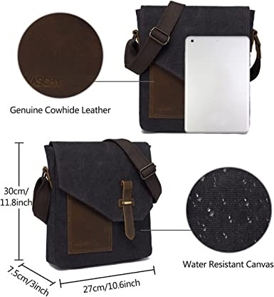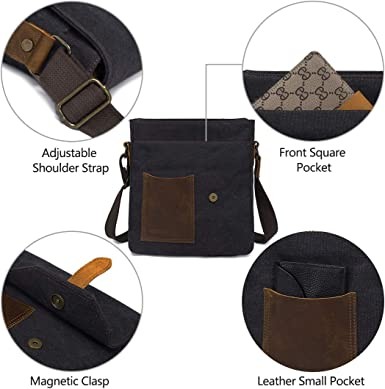 VASCHY vintage canvas and leather lightweight messenger bag